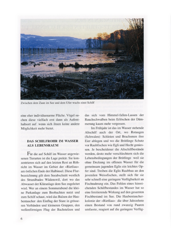 Das Schilfrohr der «Rietliau» bildet sich seit den 1990er Jahren trotz der zum Schilfschutz angelegten Umzäunungen zurück und von den schweren Schädigungen im Frühjahr 1999 erholt es sich nur mühsam.