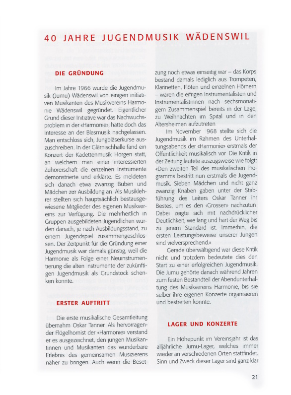 40 Jahre Jugendmusik Wädenswil
