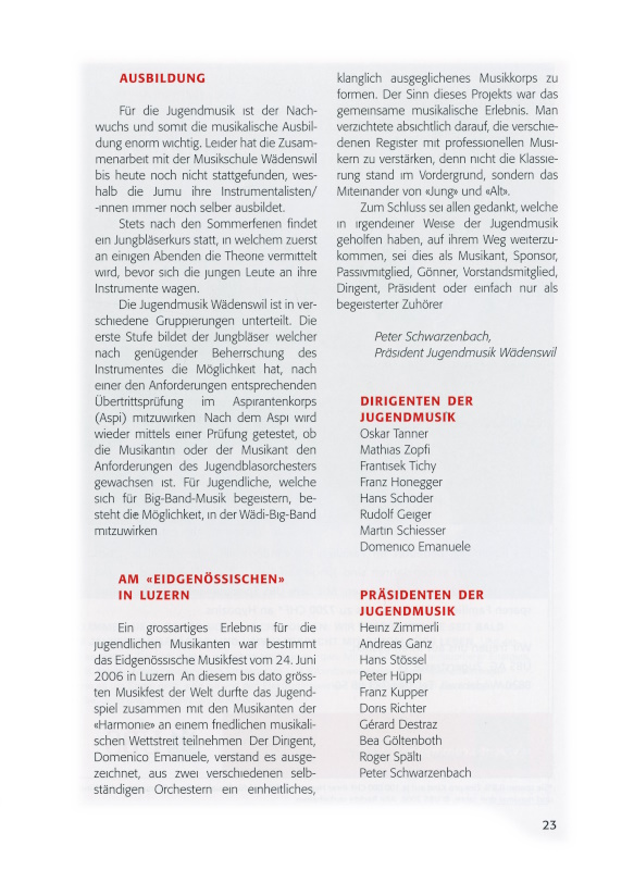 Zum Schluss sei allen gedankt, welche in irgend einer Weise der Jugendmusik geholfen haben, auf ihrem Weg weiterzukommen, sei dies als Musikant, Sponsor, Passivmitglied, Gönner, Vorstandsmitglied, Dirigent, Präsident oder einfach nur als begeisterter Zuhörer.