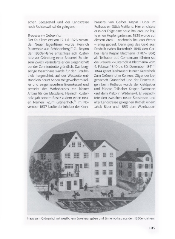 103 Haus zum Grünenhof mit westlichem Erweiterungsbau und Zinnenvorbau aus den 1830er-Jahren.