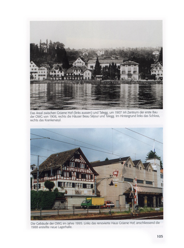 105b Die Gebäude der OWG im Jahre 1995. Links das renovierte Haus Grüene Hof, anschliessend die 1988 erstellte neue Lagerhalle.