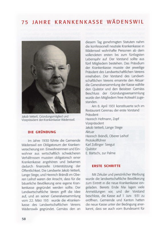 58 Jakob Vetterli, Gründungsmitglied und Vizepräsident der Krankenkasse Wädenswil