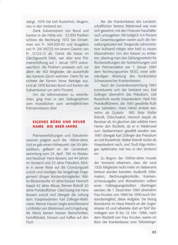 64 Im Haus Freieck an der Zugerstrasse 43 befand sich von 1984 bis 1991 das Büro der Krankenkasse Wädenswil.