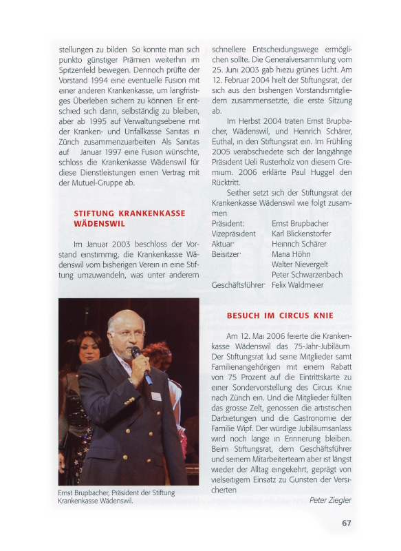 67 Ernst Brupbacher, Präsident der Stiftung Krankenkasse Wädenswil.
