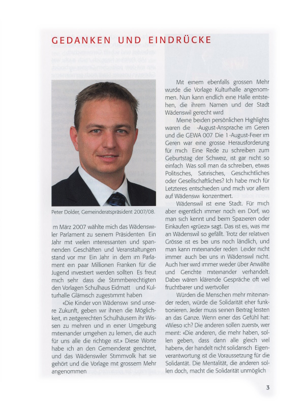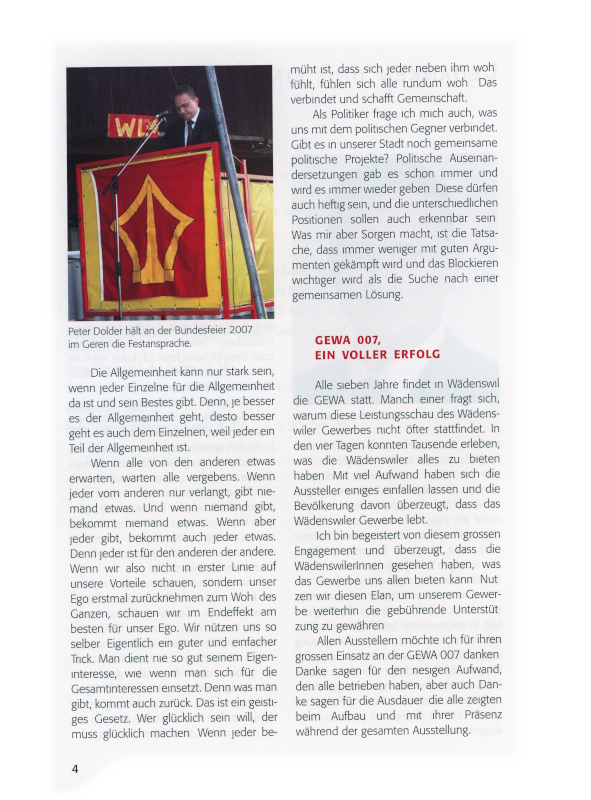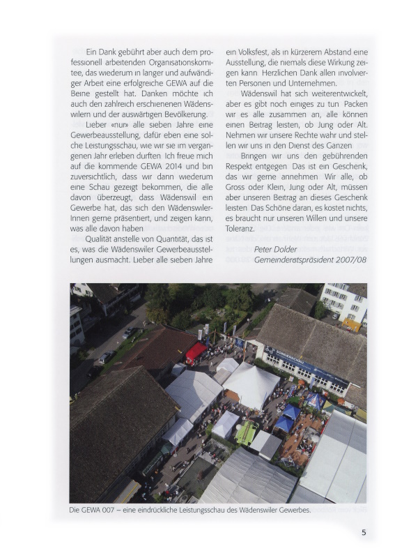 Ein Dank gebührt aber auch dem professionell arbeitenden Organisationskomitee, das wiederum in langer und aufwändiger Arbeit eine erfolgreiche GEWA auf die Beine gestellt hat. Danken möchte ich auch den zahlreich erschienenen Wädenswilern und der auswärtigen Bevölkerung.