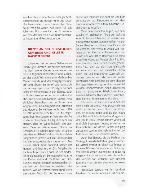 So problematisch und übertrieben uns die Zucht und Strenge von Johannes Hirt heute erscheint, so dürfen wir nicht vergessen, dass sich damals zahlreiche Kinder an Körperstrafen von ihren Eltern her gewohnt waren. Auch war es sicher kein leichtes, in einer Mehr- oder gar Achtklassenschule die nötige Ruhe und Disziplin herzustellen, damit Lernerfolge überhaupt möglich waren. Auf jeden Fall galt Johannes Hirt sowohl in der Schulstube wie weit darüber hinaus als unumschränkte Autorität und Respektsperson.