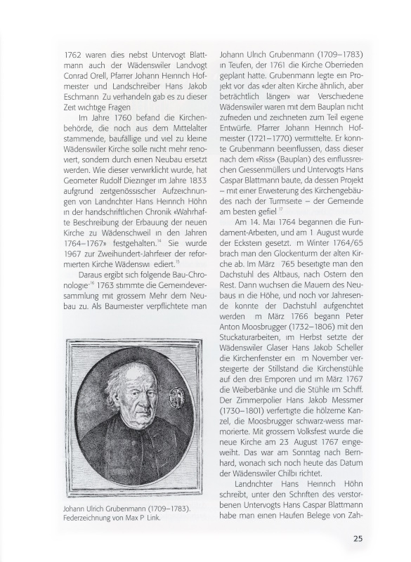 15 Heinrich Höhn, Wahrhafte Beschreibung der Erbauung der neuen Kirche zu Wädensweil in den Jahren 1764-1767, in: Die Kirche von Wädenswil. Jubiläumsschrift zur 200-Jahr-Feier 1967, Wädenswil 1967, S. 39-77.