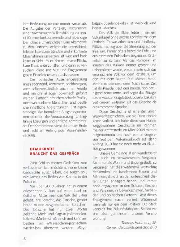 Wädenswiler Jahrbuches seine Gedanken zum verflossenen Präsidialjahr kundzutun.