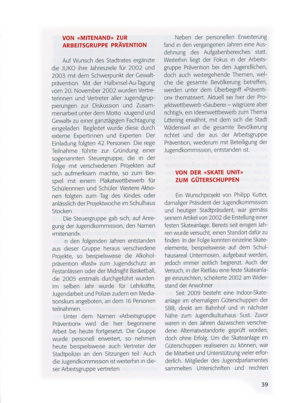 In den vergangenen Jahren wuchsen die Qualität der Jugendarbeit sowie das Bewusstsein der Stadt um die Wichtigkeit der Jugendarbeit in Wädenswil.