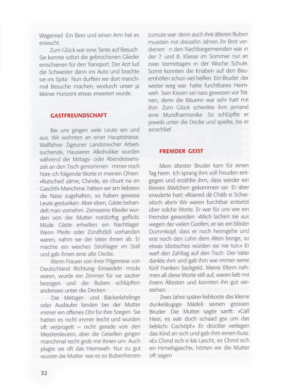 Mit schwerem Herzen ging ich damals ins Bett, wälzte mich hin und her, sah meine kleinen Geschwister im Strassengraben liegen oder wie wir in einem leeren «Ströischüürli» Unterschlupf fänden. Endlich schlief ich ein.