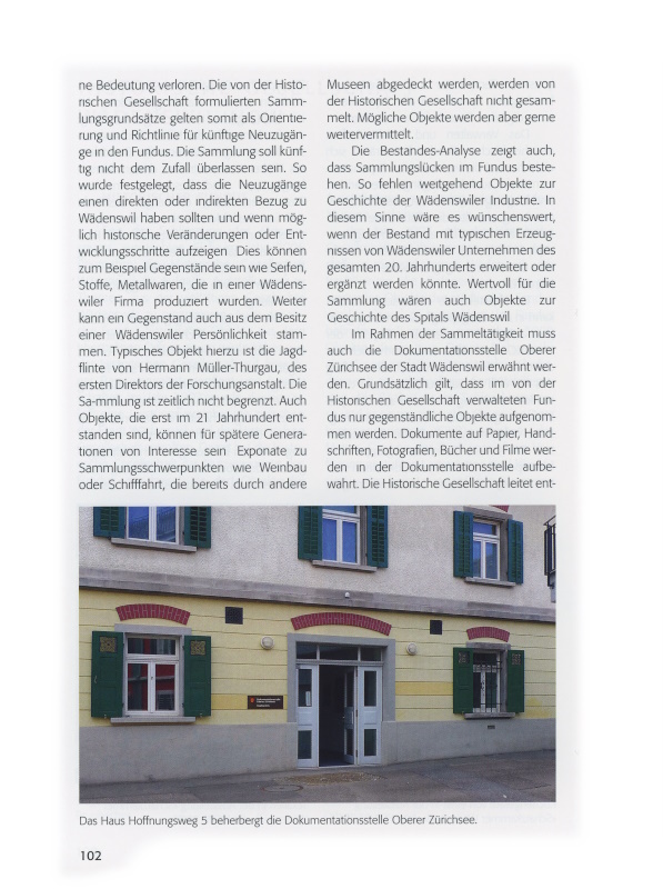 102 Das Haus Hoffnungsweg 5 beherbergt die Dokumentationsstelle Oberer Zürichsee.