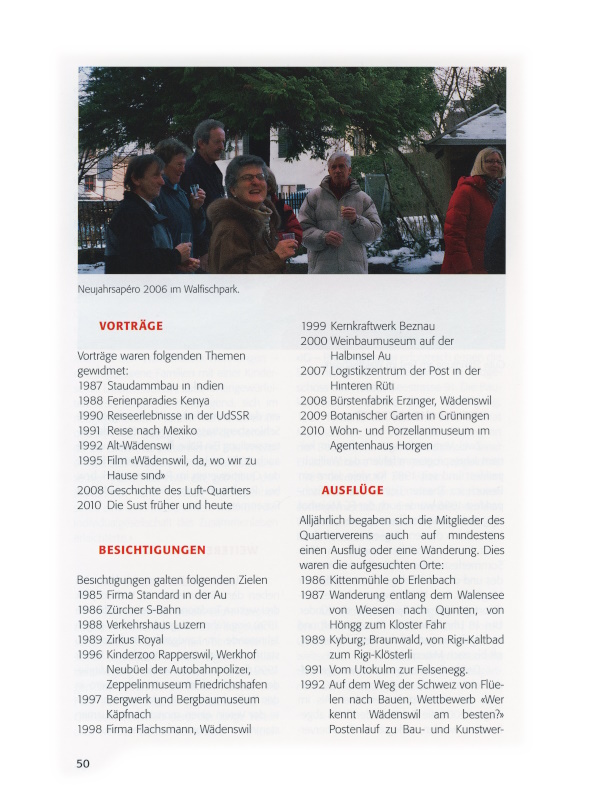 Alljährlich begaben sich die Mitglieder des Quartiervereins auch auf mindestens einen Ausflug oder eine Wanderung. Dies waren die aufgesuchten Orte:
