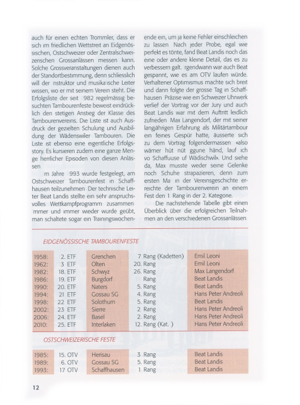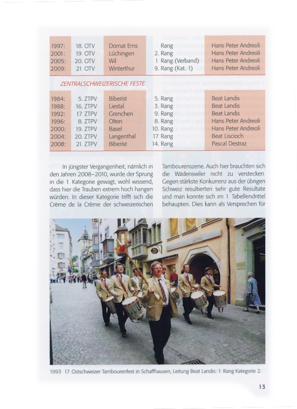 13 1993: 17. Ostschweizer Tambourenfest in Schaffhausen, Leitung Beat Landis: 1. Rang Kategorie 2.