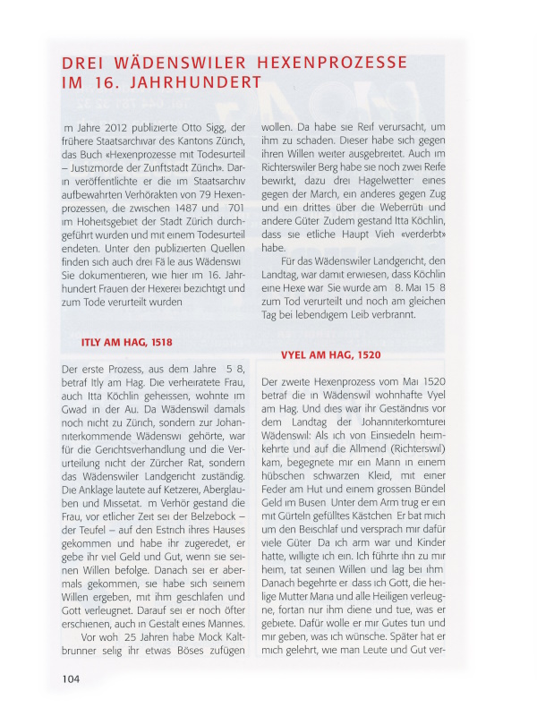 Der zweite Hexenprozess vom Mai 1520 betraf die in Wädenswil wohnhafte Vyel am Hag.