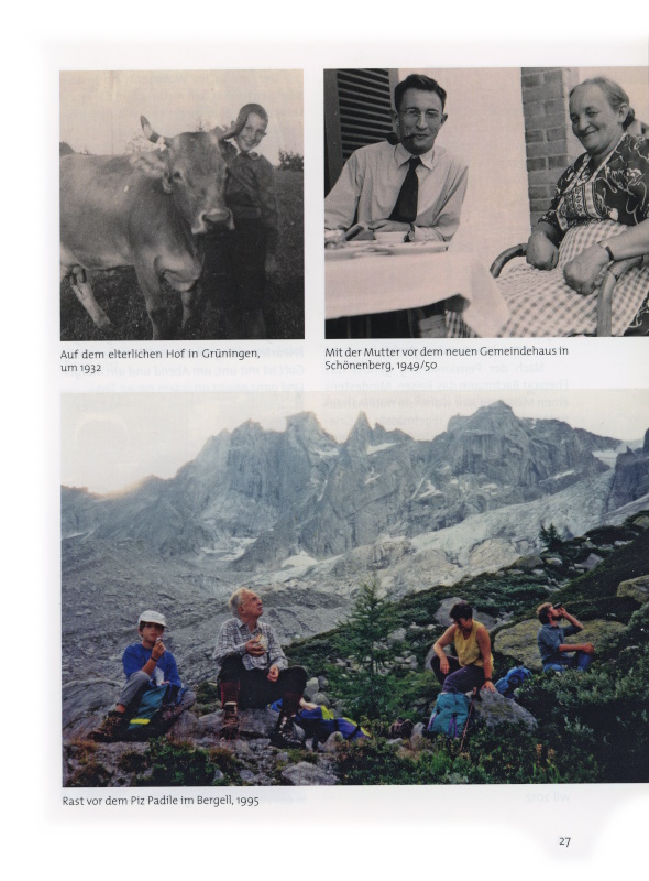 Ruedi Bachmann, so nannten ihn seine Freunde lebenslang, wurde am 24. September 1922 in Grüningen geboren, wo er seine Kindheit verbrachte. Der Vater Heinrich stammte aus dem Müsli Schönenberg, die Mutter Bertha, geborene Pfister, aus dem Sunft Wädenswil. 1925 kam die Schwester Bethli und 1932 der Bruder Max auf die Welt. Im Büel Grüningen bewirtschafteten die Eltern einen grösseren Bauernbetrieb. Zur grossen Familie gehörten auch Anna Hitz, Ruedis Grossmutter väterlicherseits, Onkel Paul, Vaters jüngster Bruder, der geistig behinderte Bruder der Grossmutter sowie die Angestellten Sepp und Paula.