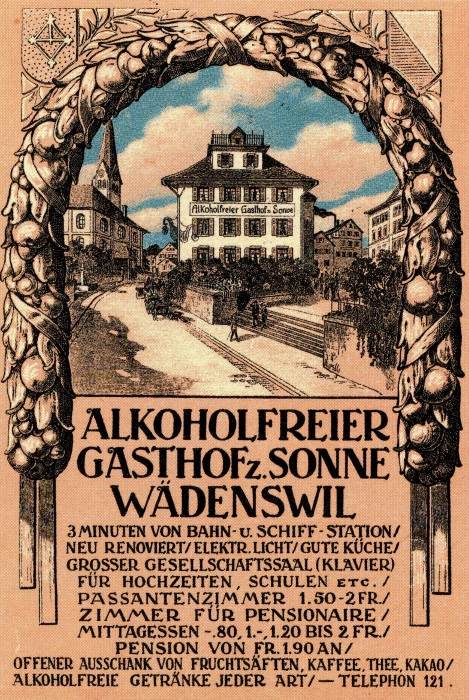 In Wädenswil gab es 1916 drei Vereine, welche die Abstinenz propagierten: das