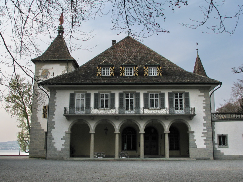 Auf der Nordwestseite der Halbinsel liess der Oberst durch seinen Bruder Hans Georg (1616–1678), den Erbauer der neuen Zürcher Stadtbefestigung und des Landguts Schipf in Herrliberg, eine Villa in venezianischem Stil mit grossen Gesellschaftsräumen errichten. Zum Herrschaftshaus gehörten eine Reihe von Ökonomiegebäuden und ein aus Reben, Ackerland, Wiesen und Wald bestehendes Umgelände. Das Hauptgebäude enthielt auf der Südseite eine hohe, geräumige Halle, welche die ganze Breite der Hauptfassade einnahm. Der über der Halle gelegene obere Teil des Hauses ruhte auf sechs Backsteinsäulen, welche mit einer Marmorimitation verkleidet waren.
