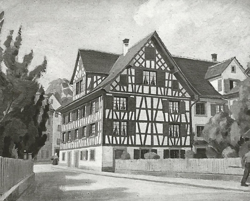 Es ist da von einem Hans Huser die Rede, welcher das «nöuw Hus mit der Gerbi, item Krutgarten, Hanfland und Matten, ob der Krone liegend», bewirtschaftete. Hans Huser ist wohl der Erbauer des prächtigen Bürgerhauses zum Talgarten, genauer gesagt des älteren, parallel zum Gerbebach verlaufenden Haupttraktes mit den schmucken Voluten-Bügen an den Dachuntersichten des Ostgiebels. Dieser Bau − ursprünglich ein Riegelhaus, das ums Jahr 1883 verputzt wurde − dokumentiert mit seinen wohlausgewogenen Formen und Proportionen noch heute den Wohlstand, aber auch den Kunstsinn der früheren Besitzer.