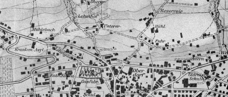 Im Ausgelände des alten Fuhrhofs, am Rand einer steil zum Oberdorf abfallenden Geländeterrasse, entstanden in den 1910er und 1920er Jahren herrschaftliche Villen an der aussichtsreichen Lage. Die Villa Fuhrstrasse 38 mit gebrochenem Walmdach und Gartenpavillon auf der Nordseite einst ein Werk des Architekten
