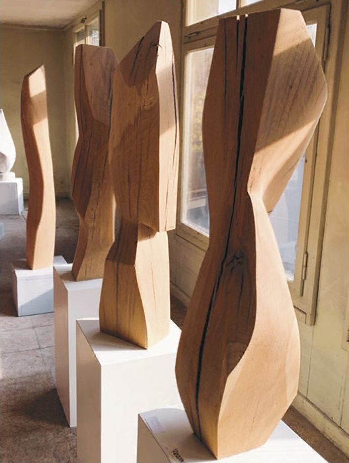Rundungen stürzen sich in Kanten, die nichts Scharfes aufweisen und sich in weitere weiche Schwingungen werfen, wie Wellen, die sich brechen; Sand, der vom Winde durchblasen wird, Dünen bildet, Verwehungen. Spitzen ragen himmelwärts, hinaufgesogen aus der weichen runden Masse, wie Wasser vom Sturm durchtost und in der Bewegung eingefroren. Doch die Hand des Künstlers streicht auch Wind, Sturm und Eis geschmeidig. Man vergisst die Härte, die des Materials, sei es Marmor, Granit, Beton oder gar Bronze, und die der unbarmherzigen Natur. Es bewegt sich alles, schwingt als natürliche Energie, die durch den Bildhauer ins Material gehauen wurde, ein Fliessen mit der Natur. Energie, Freude, Staunen, Leben, mit jedem Schlag in den Stein gegossen, einer Figur eingehaucht. Und dieses leichte, gleichmässige Leuchten.