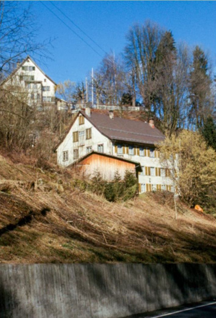 Das mit 1765 datierte Waschhaus gehörte stets denselben Besitzern wie die gegenüber gelegene Wirtschaft. 1925 wurde dieses Gebäude um einen Garagenanbau erweitert. 68 Die Scheune mit Remise und Wagenschopf wechselte ab 1893 durch Kauf verschiedentlich den Eigentümer und gehörte 1893 Jakob Gattiker, 1897 Gottlieb Schärer, 1906 Heinrich Stäubli, 1912 Alois Fuchs und kam 1916 in den Besitz der Tuchfabrik Wädenswil AG.69 Jakob Gattiker erwarb 1893 das 1873 neu erstellte Wohnhaus, Ersatz für den 1873 abgebrannten Speicher von 1749. 1897 wurde Gottlieb Schärer neuer Eigentümer, 1906 Hermann Stäubli und 1916 die Tuchfabrik Wädenswil AG.70