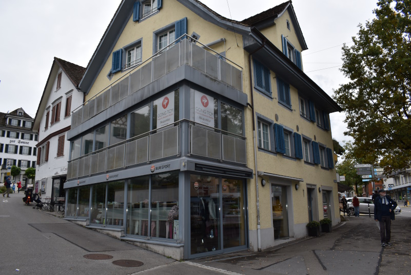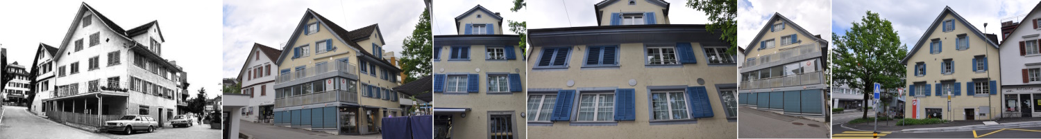 Traufständiger Giebelbau mit Ladenlokal und zwei Vollgeschossen. Das an den «Sunneblick» (Schönenbergstrasse 1) angebaute Wohnhaus vom Typ Zürichseehaus ist für das Ortsbild von grösster Bedeutung. Das Doppelhaus bildet die Ecke Gerbestrasse/Schönenbergstrasse und ist von allen Seiten mit Strassen umgeben. Das Haus wurde 1759 erbaut. 1813 ist ein Wohnhaus, welches dem Lithographen Brupbacher gehörte, erwähnt; es war je zur Hälfte Riegel- und Massivbau. 1890 erfolgten Umbauten zu Werkstatt und Verkaufslokal. [cle]