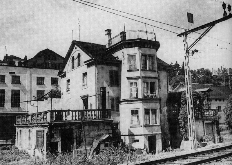Das Cavallasca-Haus im Giessen, benannt nach Baumeister J. Cavallasca, stand nordwestlich des Spinnereigebäudes der Tuchfabrik Pfenninger zwischen Bahngeleisen und Seestrasse und wurde im September 1936 abgebrochen. Der Giebel gleicht jenem der Alten Kanzlei, Zugerstrasse 28 und dem Goldschmied-Hess-Haus *. [pzi]