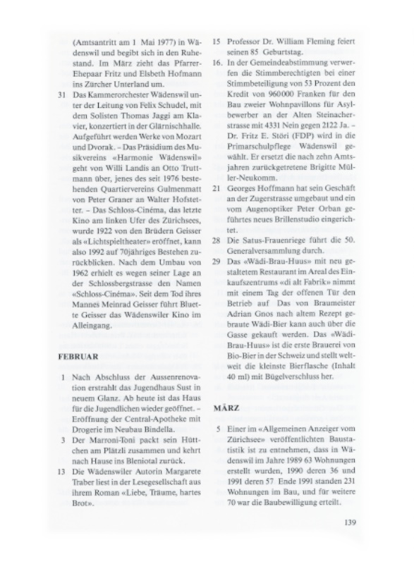 22. Hans Walder-Furrer, Primarlehrer in Wädenswil von 1939 bis 1979, stirbt im 78. Altersjahr.