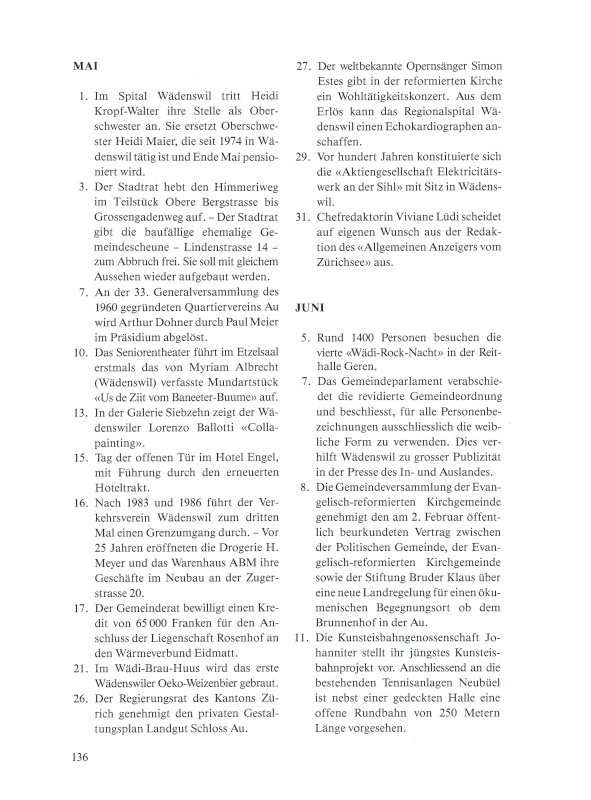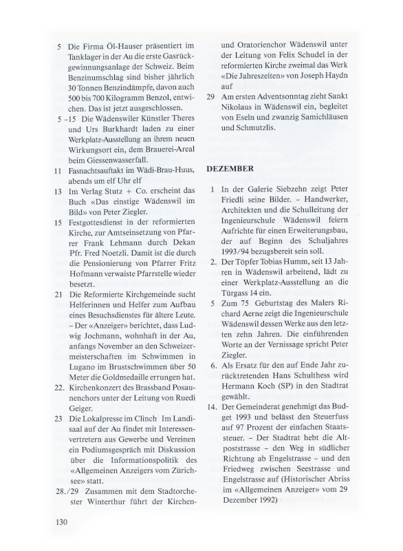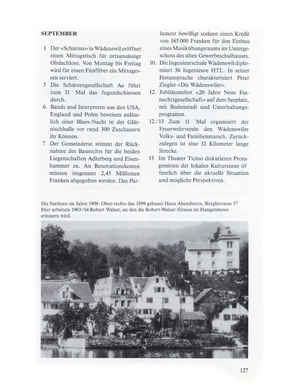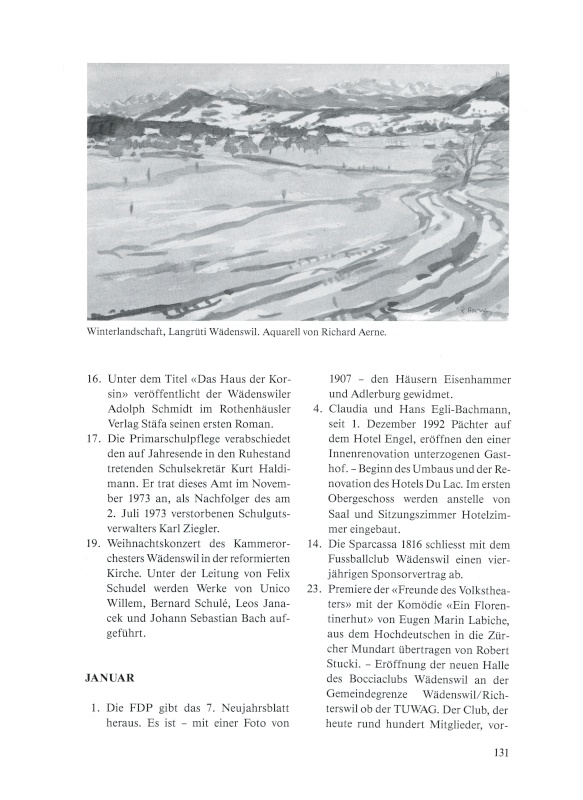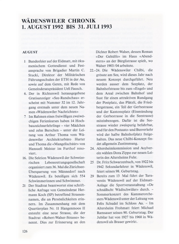 20. Walter Blickenstorfer-Fuss, früher Steuersekretär der Gemeinde Wädenswil, stirbt in der Nacht nach seinem 80. Geburtstag.
