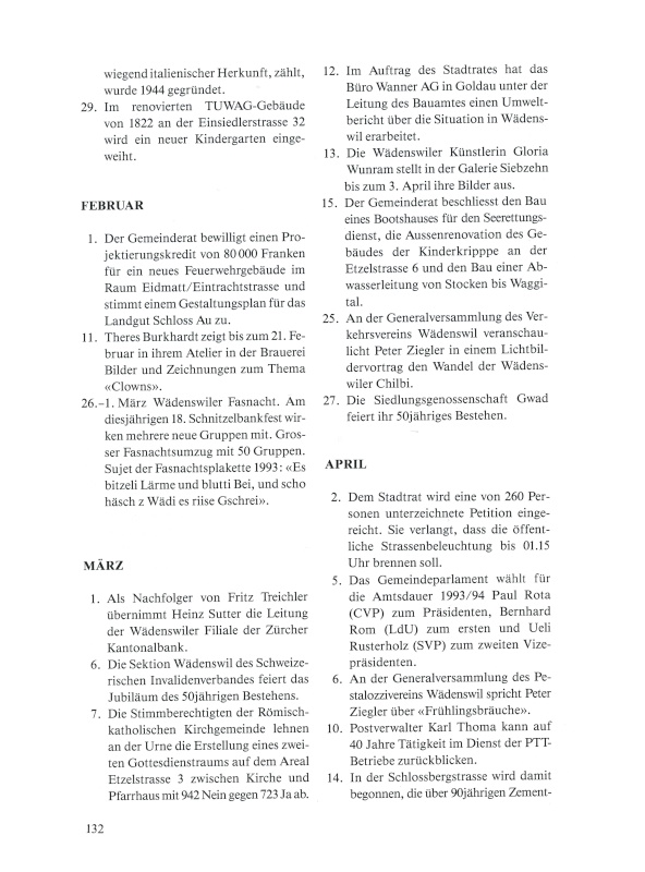 6. Die im Areal der TUWAG eingemietete Wädenswiler Firma Silan AG, seit 1979 auf dem Gebiet der Herstellung von Glasfasergewebe für technische Anwendungen tätig, gibt bekannt, sie werde die Produktion vollständig einstellen. Währungsturbulenzen und der Zusammenbruch des ehemaligen Ostblockmarktes haben der fast vollständig auf Export ausgerichteten Firma den Todesstoss versetzt.