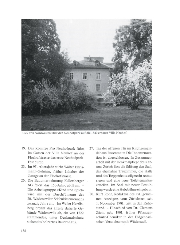 11. Emil Kuratli-Brupbacher, während vieler Jahre Beamter auf der Post Wädenswil, stirbt im 82. Altersjahr.