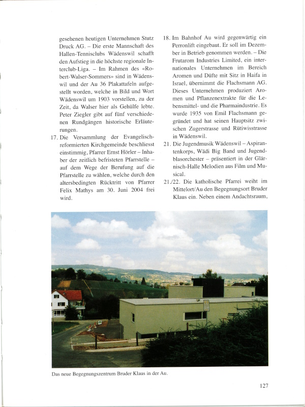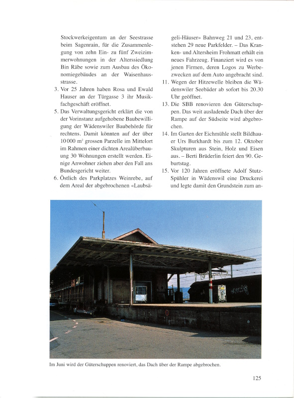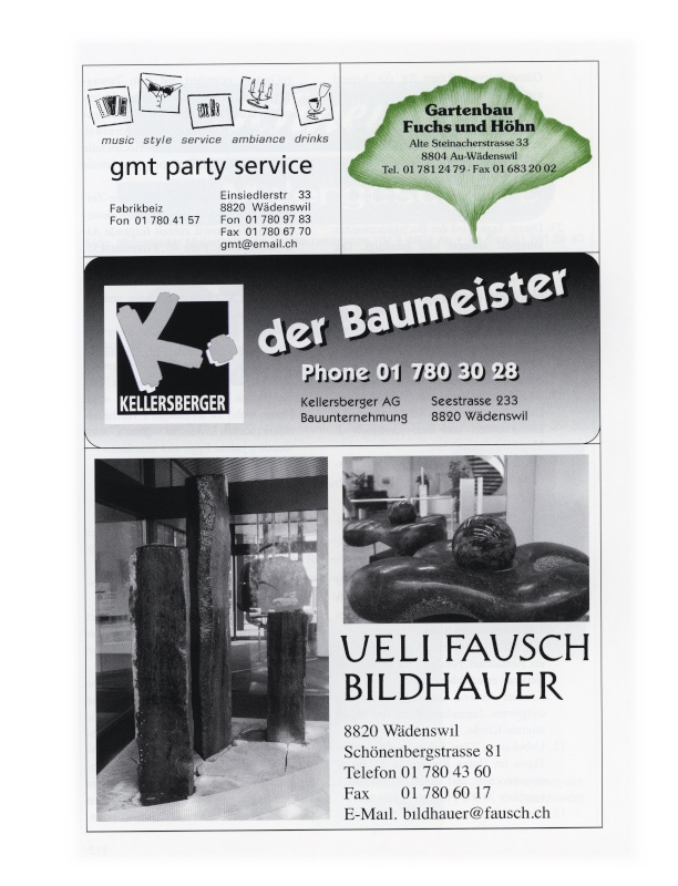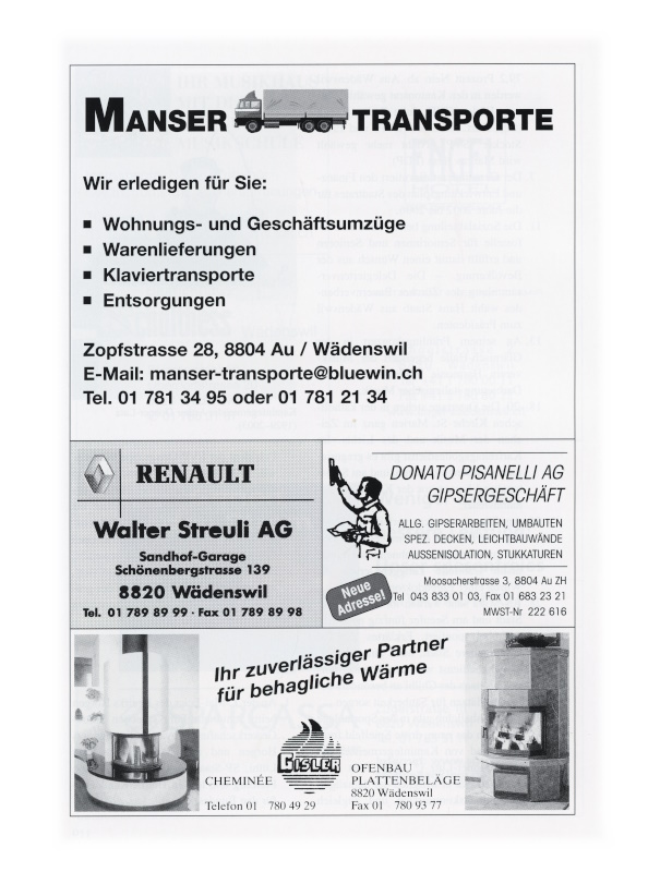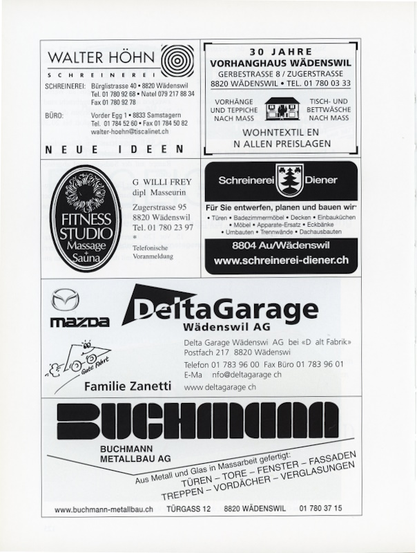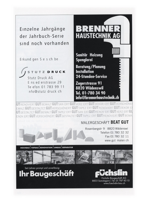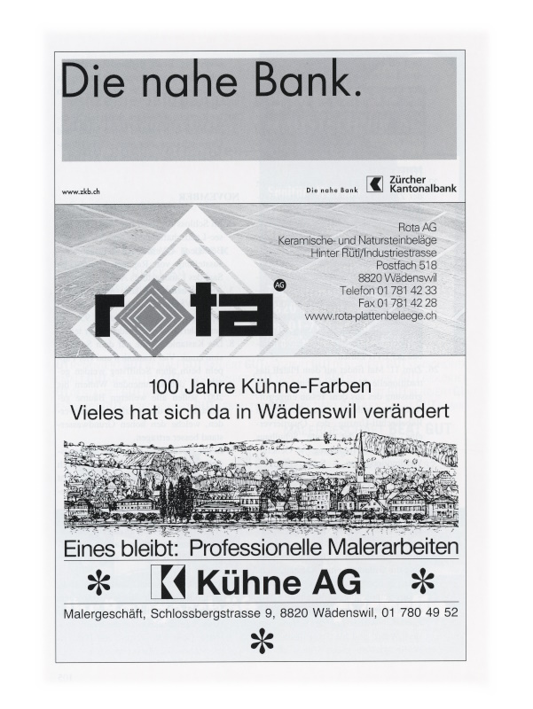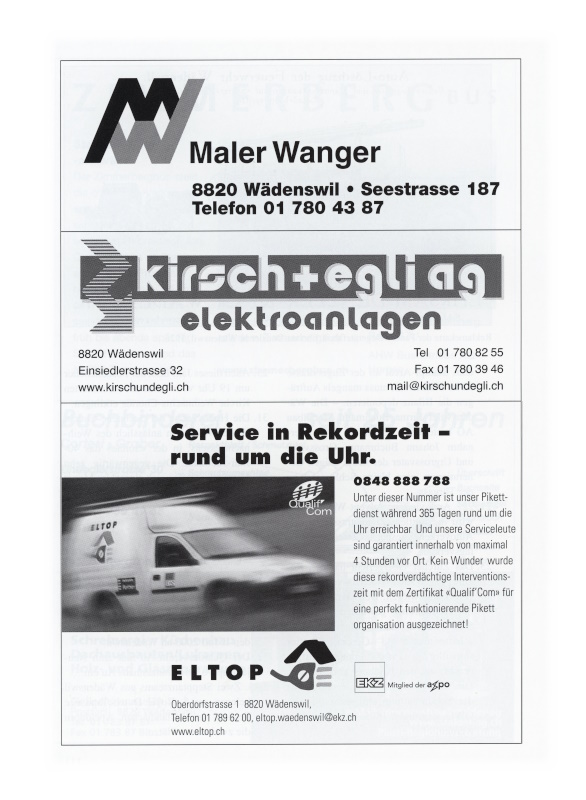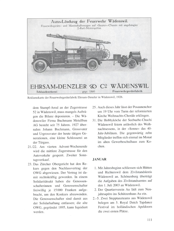 Ehrsam AG in Reichenburg, einst bedeutende Feuerwehrgerätefabrik auf dem Stampf-Areal an der Zugerstrasse 52 in Wädenswil, muss mangels Aufträgen die Bilanz deponieren. – Die Wädenswiler Firma Buchmann Metallbau AG besteht seit 75 Jahren. 1927 übernahm Johann Buchmann, Grossvater und Urgrossvater der heute tätigen Generationen, eine kleine Schlosserei an der Türgass.