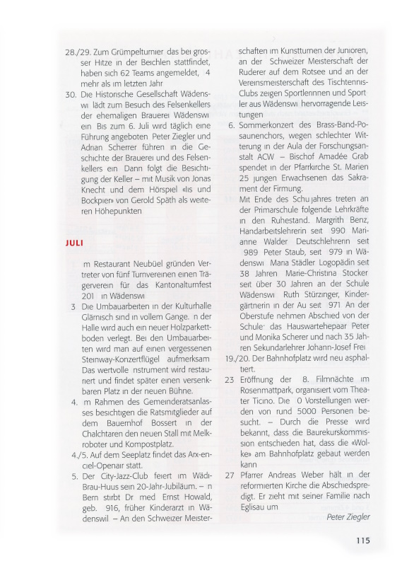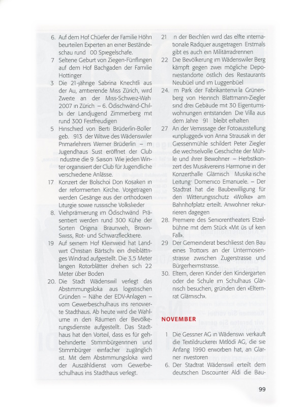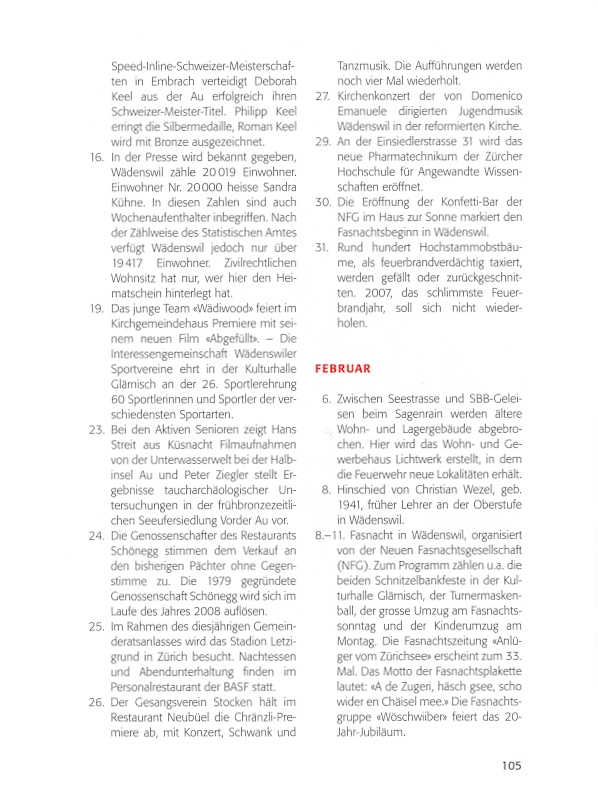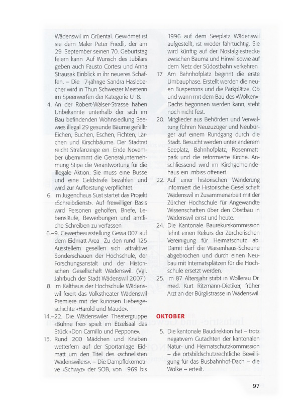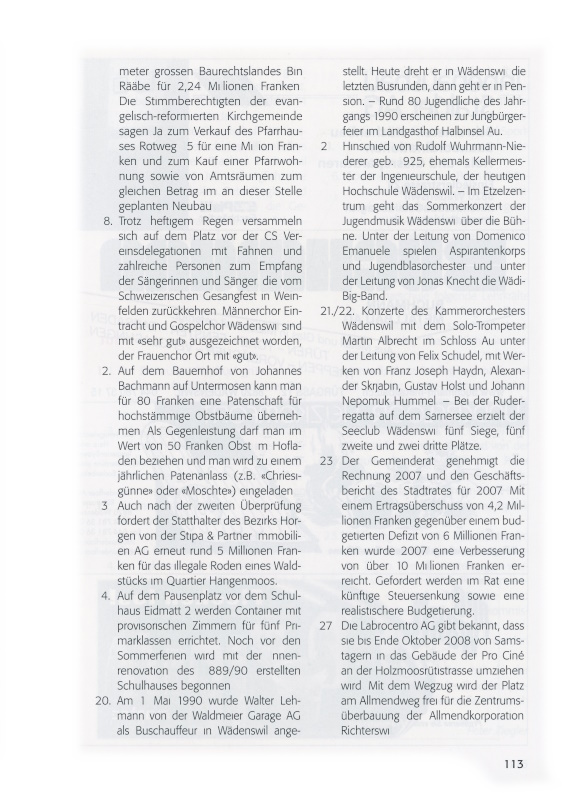 20. Am 1. Mai 1990 wurde Walter Lehmann von der Waldmeier Garage AG als Buschauffeur in Wädenswil angestellt. Heute dreht er in Wädenswil die letzten Busrunden, dann geht er in Pension. – Rund 80 Jugendliche des Jahrgangs 1990 erscheinen zur Jungbürgerfeier im