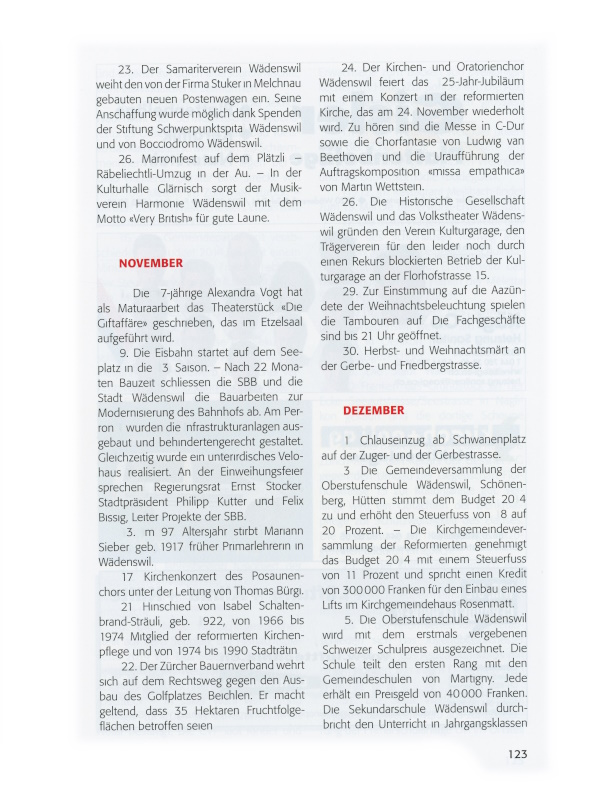 13. Die Wädenswiler Firma Baumann Hüppe AG an der Zugerstrasse 162 geht in Konkurs. 150 Menschen verlieren ihre Stelle. Erst 37 haben einen neuen Arbeitsplatz gefunden.