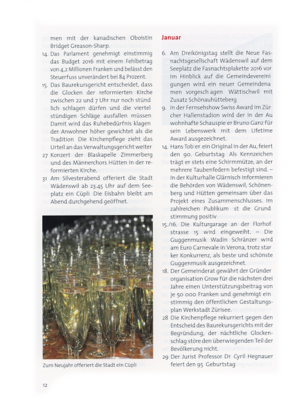 12 Zum Neujahr offeriert die Stadt ein Cüpli.