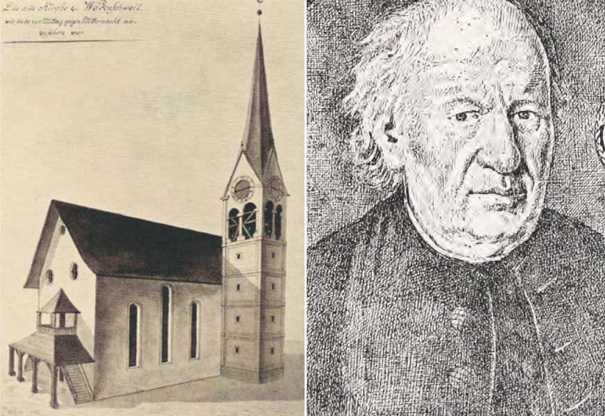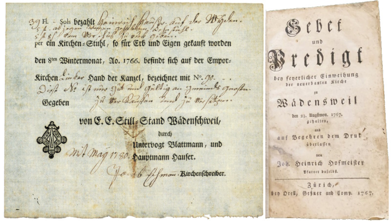Mit Festpredigt, Kantate und grossem Volksfest feiert Wädenswil am Sonntag nach Bernhard, am 23. August 1767, die Einweihung der neuen Kirche mit dank kühner Dachkonstruktion stützenlosem Innenraum.