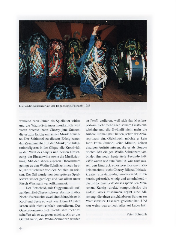 Einen eigenen Stil zu spielen. Das hat sich immer als hundertprozentig richtig erwiesen. Das Ziel war nie, andere zu kopieren, sondern ein bekanntes Musikstück auf unsere Art zu spielen. Als ich die Wadin-Schränzer gründete, war es zudem mein Credo, jedes Jahr ein anderes Gwändli mit Grind herzustellen. Das taten wir auch in jedem der 23 Jahre, in denen ich dabei war.