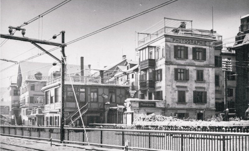 120b Fotoatelier im Haus zur Schönegg am Dampfschiffsteg, um 1930. Im Jahr 1931 wurde das Haus zusammen mit 15 weiteren Häusern im Bahnhofquartier abgerissen.