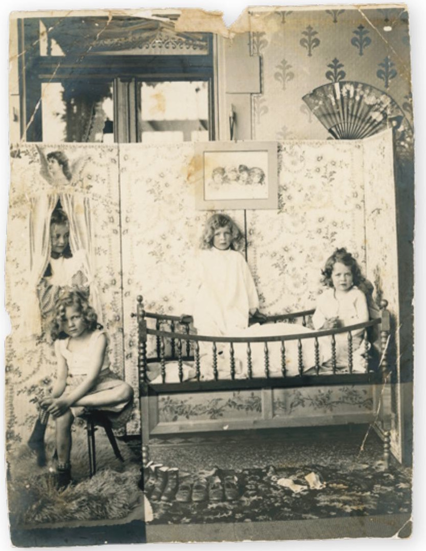 121 Die Geschwister König vor der Kulisse des Fotostudios, um 1910.