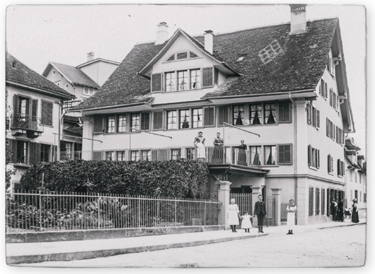 In den folgenden Jahrzehnten wurden in Wädenswil ein halbes Dutzend Fotogeschäfte eröffnet. Traugott Richard führte ab 1870 ein Atelier im Haus «Wasserfels», später im «Holderbaum» und zuletzt im Haus «zur Schönegg». Letzteres wechselte bis 1931 sechsmal den Besitzer, bis das Gebäude schliesslich für den Neubau des Bahnhofs und den Bahnhofplatz abgerissen wurde.10 Ferdinand Gerstner eröffnete 1876 sein «photographisches Atelier», das ab 1884 am Plätzli lag. Er nannte es Haus «Daguerre». Nach der Jahrhundertwende übernahm Emil Listenow das Geschäft, verlegte es an die Oberdorfstrasse 39 und übergab es 1924 dem Fotografen Ernst Meusser.11