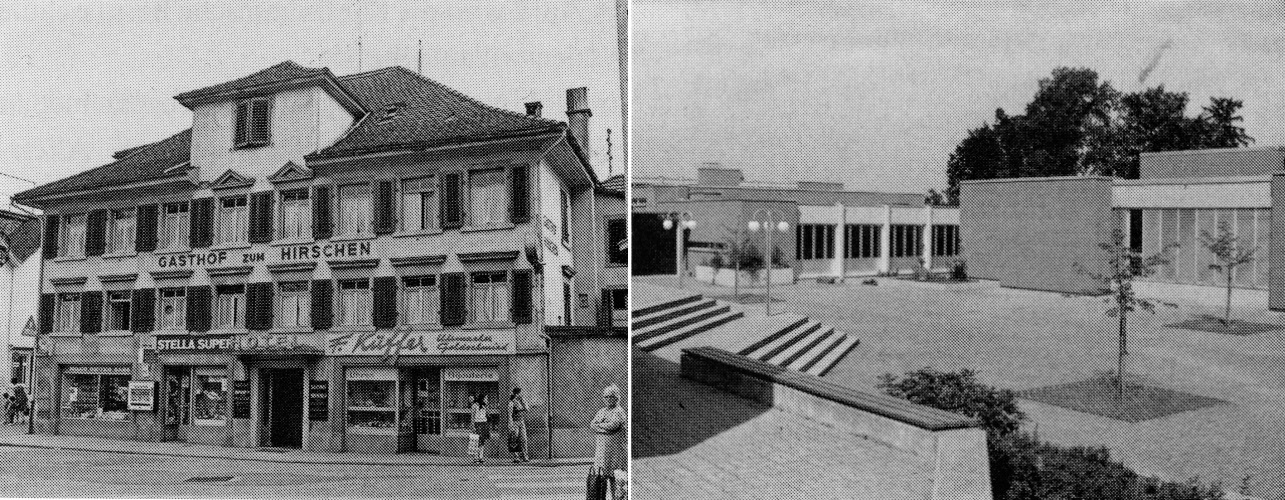 63 Gasthof «Hirschen», abgebrochen 1975/76. 64 Oberstufenschulanlage Steinacher, eingeweiht 1975.