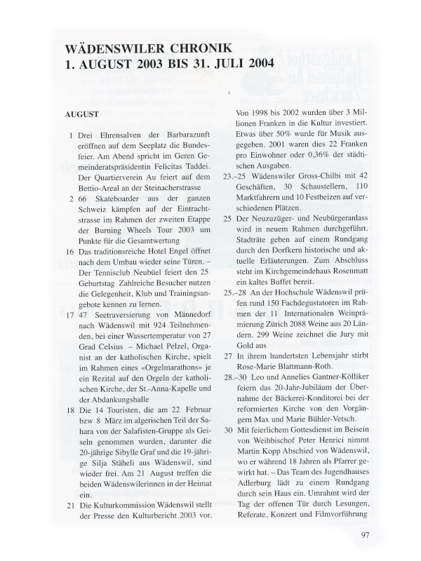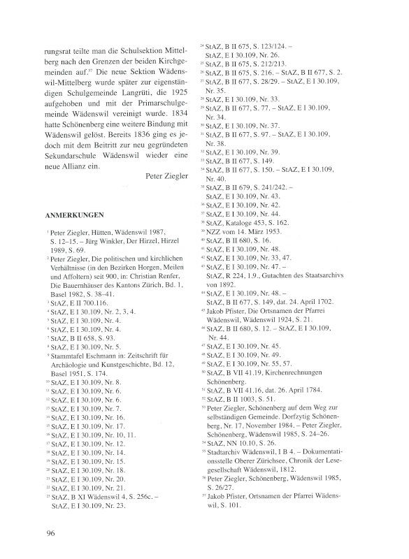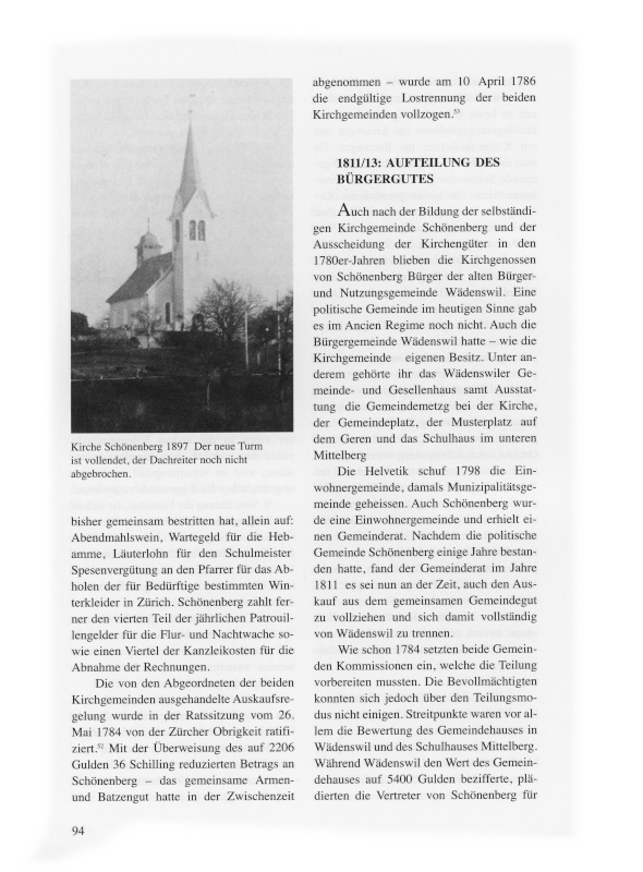 4. Schönenberg erhebt dann von Wädenswil keine weiteren Forderungen mehr. Die beiden Gemeinden sind fortan in kirchlichen Belangen völlig getrennt. |
