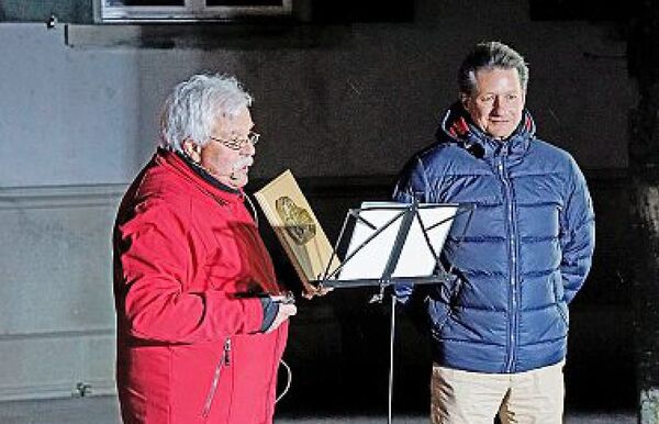 Rolf Baumbach, Leiter der Werke Wädenswil, und Herr über alle Schneepflüge, nahm die Grossplakette mit Humor entgegen. Mit der Präsentation endete eine stimmungsvolle Plakettenvernissage. Die Gäste wurden verpflegt und verabschiedeten sich zufrieden in die Wädenswiler Kälte.