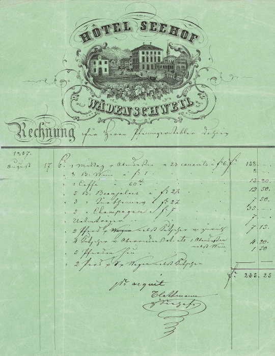 Offensichtlich wurde er nicht enttäuscht: Im letzten Band seiner gesammelten Werke, die 1850 erschienen, beschreibt er unter dem Titel «Die Komödie in Wädenschwyl am Zürichsee» seinen Ausflug mit allen saftigen Details. «Wädenschwyl, man nennt es scherzhaft Klein-Paris, ist reich, elegant und obgleich liberal oder radikal, doch nicht ohne die aristokratischen Gelüste des Reichtums», kommentierte er.6 Gottfried Keller, der heute als einer der wichtigsten Erzähler des Realismus gilt und Ruge nachweisbar kannte, liess sich davon zu «Kleider machen Leute» inspirieren. In seiner Version entspringt der Schauplatz Goldach allerdings der Fantasie des Autors. Mit Wädenswil hat er kaum etwas gemein bis auf die stattlichen Häuser, die Sinnbilder und fantasievolle Namen tragen – ein Stil, der noch weit verbreitet war, als Keller seine Novelle schrieb. Trotzdem glaubt man das Wädenswil des ausgehenden 19. Jahrhunderts durchaus präzis beschrieben, wenn Keller jene Goldacher nennt, die auf den Betrüger hereinfallen: «Diese Leute waren nichts weniger als lächerlich oder einfältig, sondern umsichtige Geschäftsmänner, mehr schlau als vernagelt; allein da ihre wohlbesorgte Stadt klein war und es ihnen manchmal langweilig darin vorkam, waren sie stets begierig auf eine Abwechslung, ein Ereignis, einen Vorgang, dem sie sich ohne Rückhalt hingaben.»7 Und wer weiss: Vielleicht haben Keller ja die Wädenswiler und Richterswiler Fasnachtskomödien angeregt, ausführlich eine Schlittenausfahrt zu schildern, während der der Hochstapler in der Novelle schliesslich von Fasnächtlern entlarvt wird.