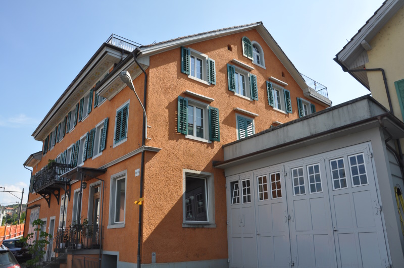 Auf dem Diezinger'sche Plan von 1830, stand an dieser Stelle die 1843 abgetragene Zehntentrotte, die damals noch direkten Seeanstoss hatte und im 18. und 19. Jahrhundert als Fixpunkt für Lagebezeichnungen in der Umgebung diente. 1850 entstand an gleicher Stelle das durch Konrad Theiler erbaute Wohnhaus «Weintrotte», eine klassizistische Kleinfabrik. 1875 wird sie in den Grundprotokollen erstmals als «Zum Wasserfels» genannt und ein Jahr später in eine Schlauchweberei umfunktioniert. 1897 erfolgte der Umbau zum Wohnhaus und vermutlich dem seeseitigen Zinnenaufbaus. [cle]